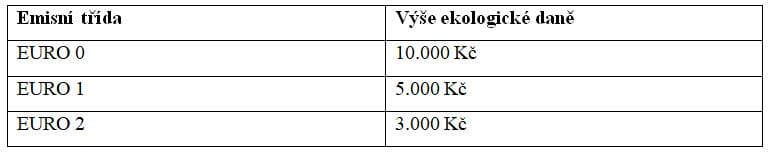 Ekologická daň se týká pouze vozidel zařazených do emisní třídy EURO 0, EURO 1 a EURO 2. Vozidla, která plní emisní normu EURO 3 a vyšší, eko daň neplatí. Cena eko daně se v roce 2024 pohybuje v závislosti na emisní třídě od 3.000 do 10.000 Kč.
