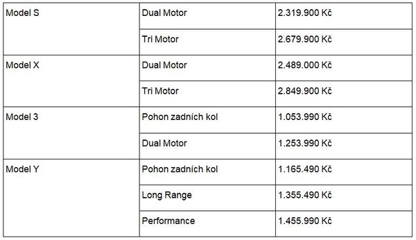 Tesla uvádí na trh jen málokdy jednu variantu modelu. Proto srovnáváme všechny dostupné a plánované verze modelů na konci roku 2023. Uvedené ceny jsou bez DPH.