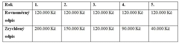 V případě vozu s pořizovací cenou 600.000 Kč by vypadal odpočet vozidla následovně: