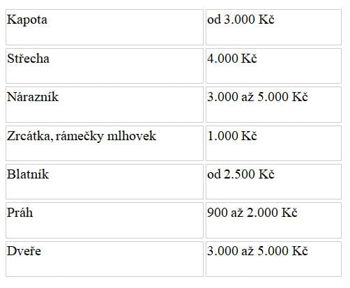 Kolik stojí přelakování jednotlivých dílů?