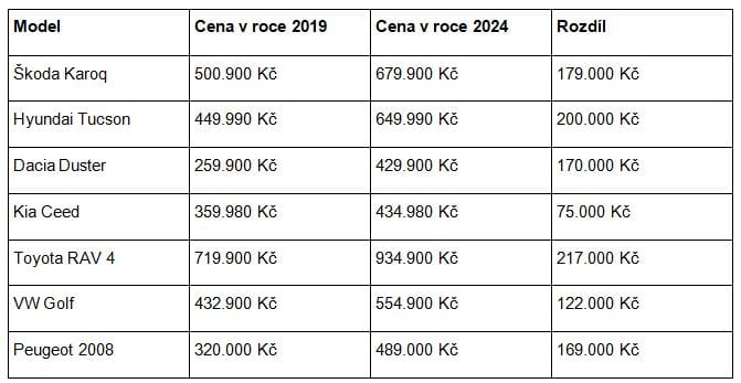 V posledních letech se ceny automobilů šplhaly nahoru. Rozdíl za poslední pětiletku tvoří přibližně 100.000 Kč u nových vozů – u některých ovšem dosahuje až závratné částky 250.000 Kč.