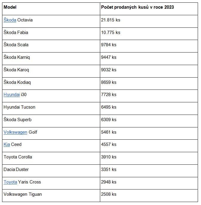 Nejprodávanější auta v ČR za rok 2023